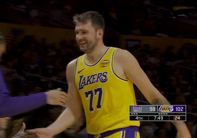中锋防东契奇?移动速度太慢,后卫防东契奇?体重顶不住,锋线防东契奇?技巧差太远,难怪卢卡在赛后板凳席上也是哈哈大笑,包括被换下场的时候都是一脸笑容的,你能够感觉到卢卡这场比赛是打爽了打开心了,手上有球了,明显就很高兴。