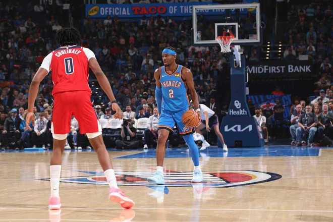 雷霆前5场连续战胜火箭、步行者、老鹰、独行侠与国王保持全胜,奇才过去两场输给黄蜂与76人遭遇2连败。本场雷霆缺少霍姆格伦、杰伦与肯威等球员,奇才缺少布兰纳姆。首节开局雷霆2-7落后,雷霆连追4分,奇才也连得4分维持5分优势。双方随后缠斗至雷霆12-13落后,亚历山大引领一波8-0攻势反超比分,奇才冲击内线反扑追分,米切尔两罚全中,首节比赛结束雷霆28-20领先奇才,亚历山大首节9中5得到13+3+2+1帽。