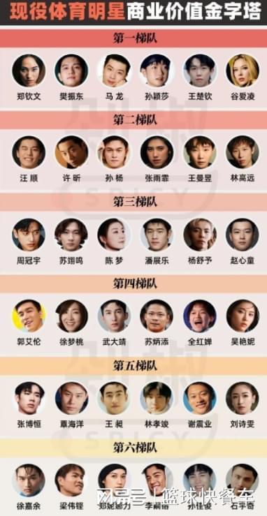 男篮这一边同样如此,郭艾伦出现在了第四梯队上。作为男篮现役关注度最高的球员之一,他也是易建联之后,少有的流量大户。尽管现如今的郭艾伦早已退居二线,不过,在商业价值上,郭艾伦却还是独一档的存在。相比于周琦、杨瀚森等人,郭艾伦仍是男篮目前商业价值最高的球员——没有之一。而除了郭艾伦外,像胡明轩、赵继伟、张镇麟这种流量大户球员,他们却没有在这份榜单上。